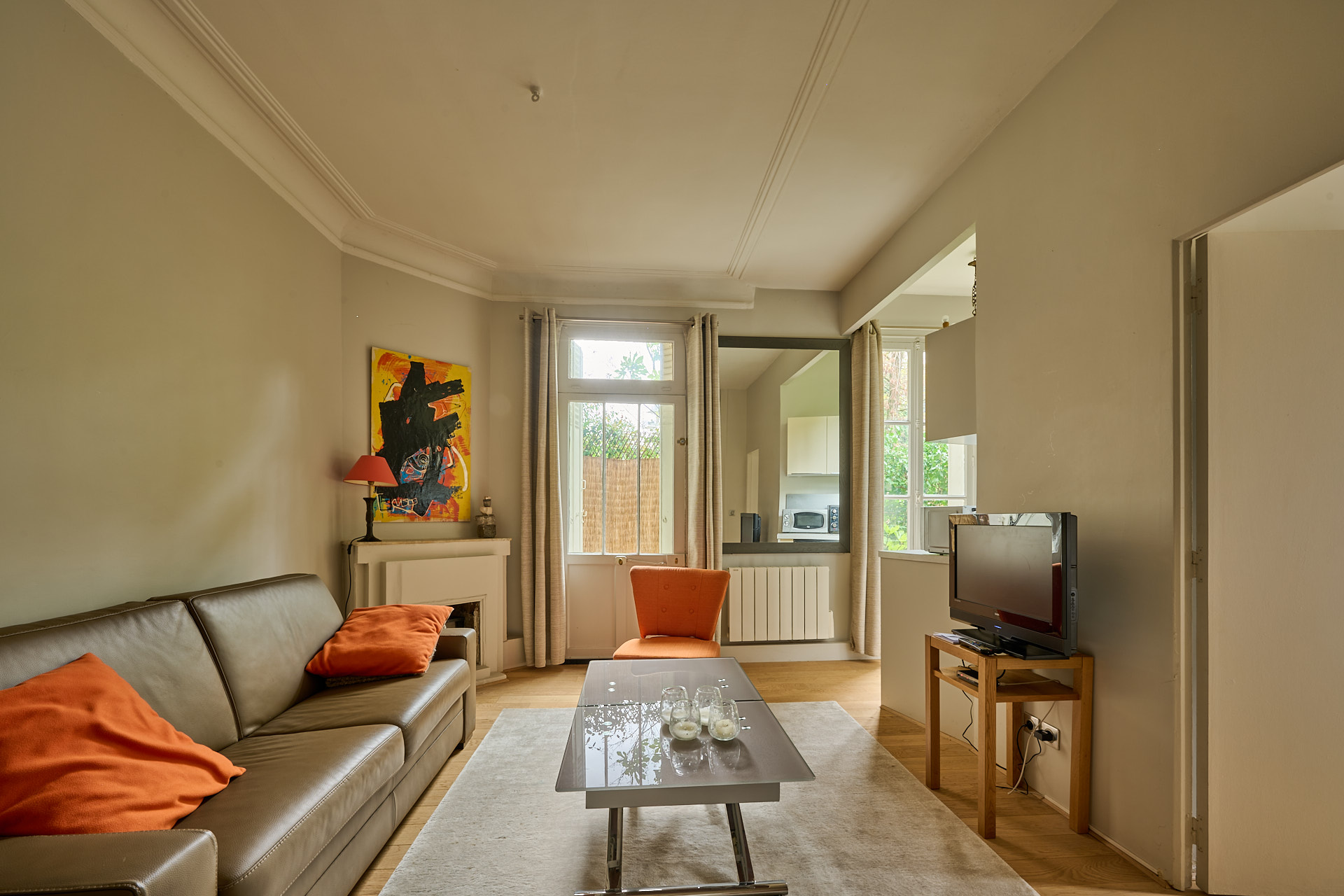 Il dispose également d’un accès à un petit jardin partagé avec l’appartement mitoyen.