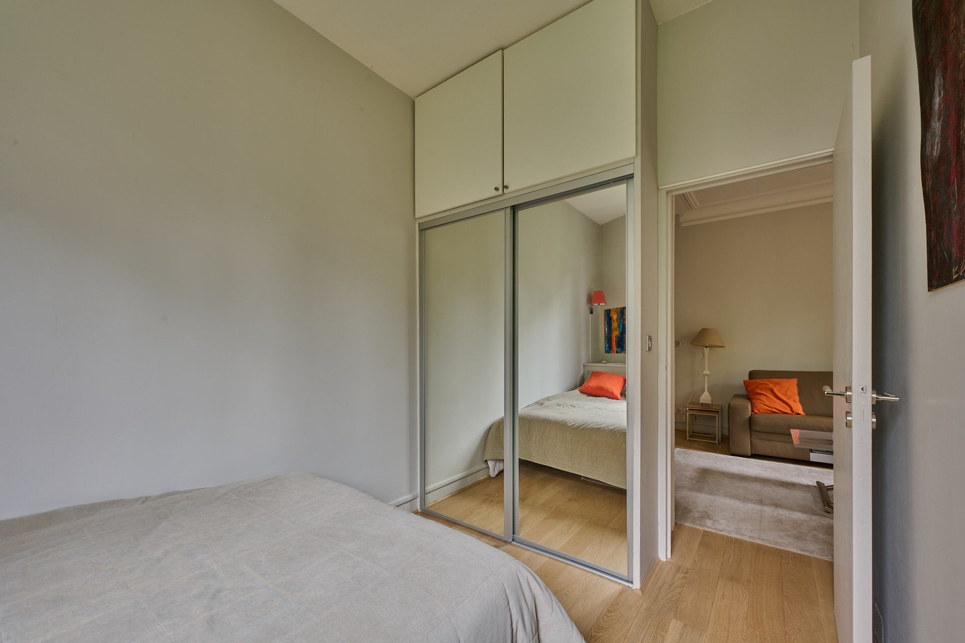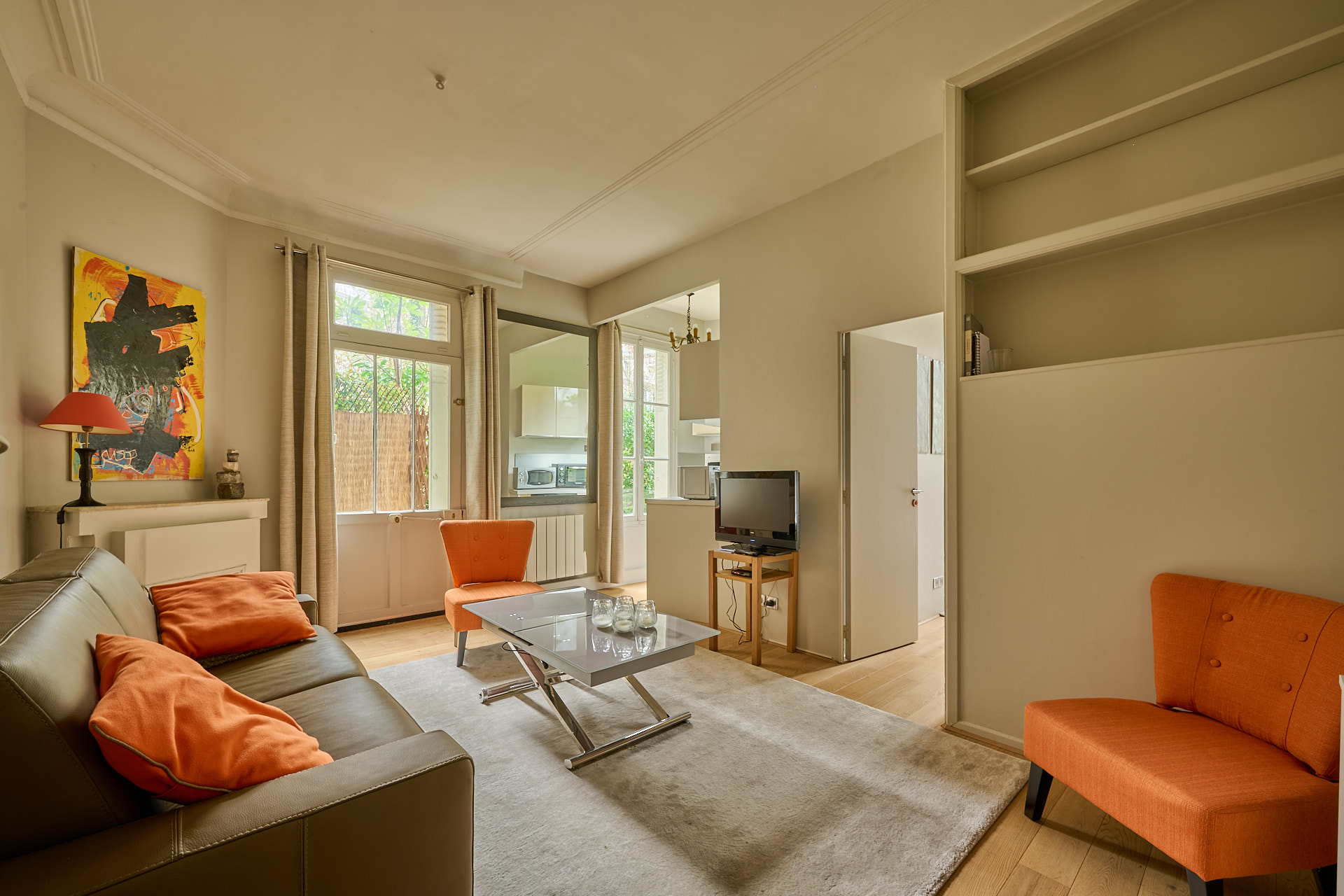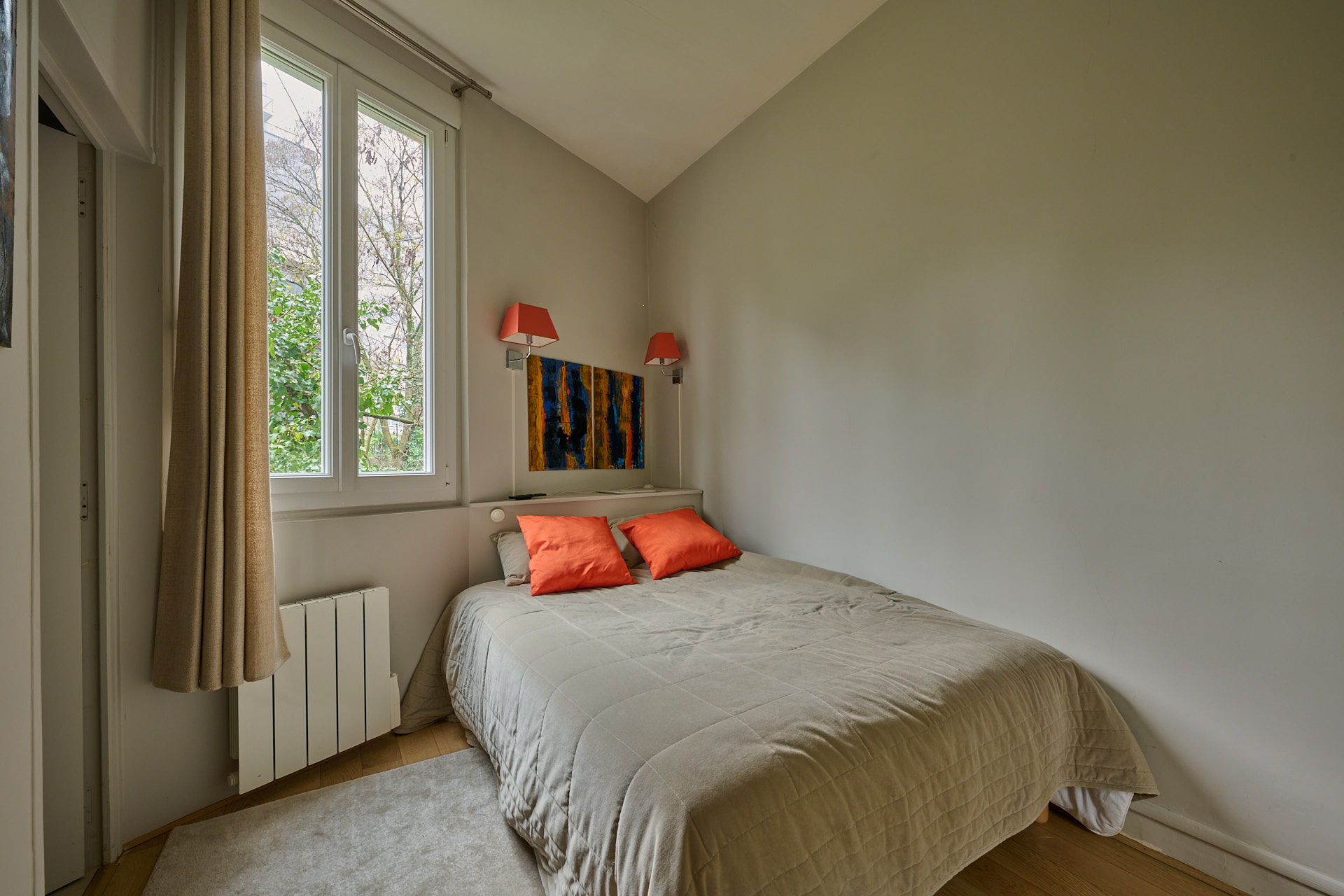 L’appartement est situé dans un immeuble ancien bien tenu et une petite impasse calme à proximité immédiate de la rue Didot.